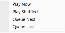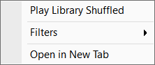 - Play Library Shuffled: loads all tracks from the library in the main panel, in shuffled order. Does NOT activate shuffle.
