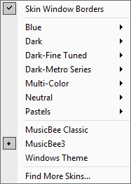 - If unticked, will use standard Windows borders rather than the borders supplied by the current skin.